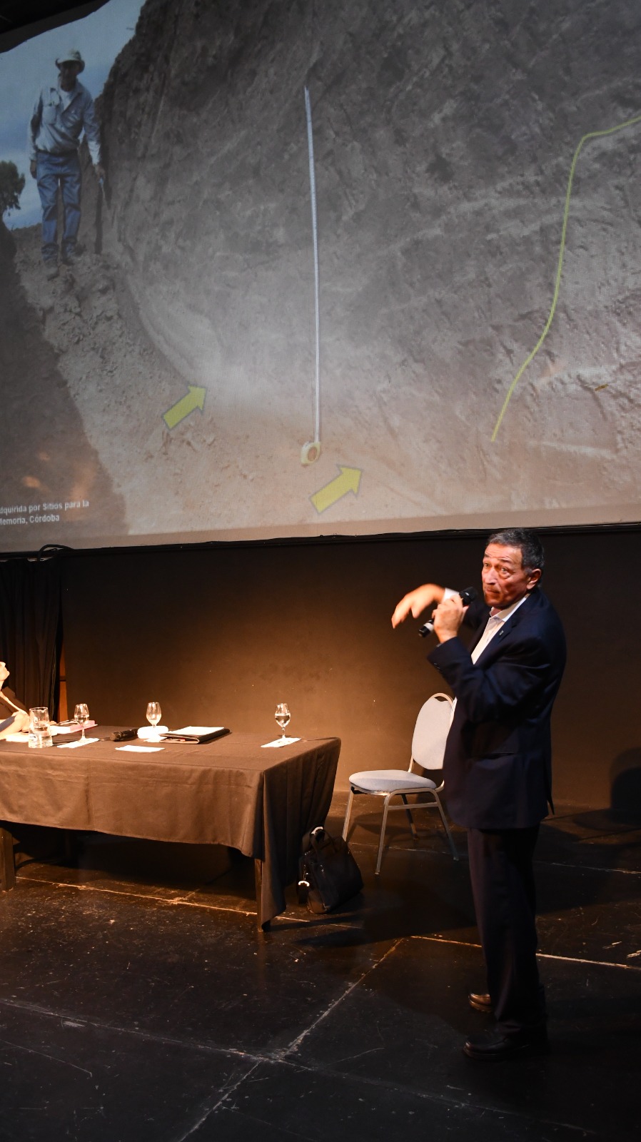 A continuación, el Dr. Guillermo Sagripanti, geólogo, docente e investigador de la Facultad de Ciencias Exactas, Físico-Químicas y Naturales, compartió su experiencia en investigaciones desarrolladas en el ex centro clandestino de detención La Perla, uno de los principales dispositivos represivos del terrorismo de Estado en el país. Durante su exposición, explicó las metodologías científicas empleadas para la localización de enterramientos clandestinos, destacando el aporte de la geología forense en los procesos de búsqueda e identificación de personas desaparecidas.