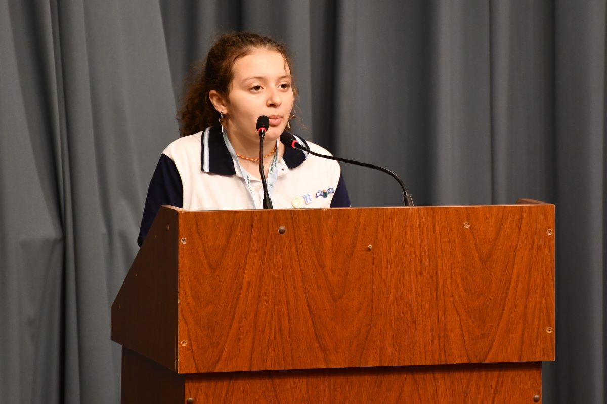 Nahiara Pi, estudiante integrante del equipo argentino que este año representó al país en la Olimpíada Iberoamericana de Biología en Colombia, también brindó palabras de bienvenida a los participantes.