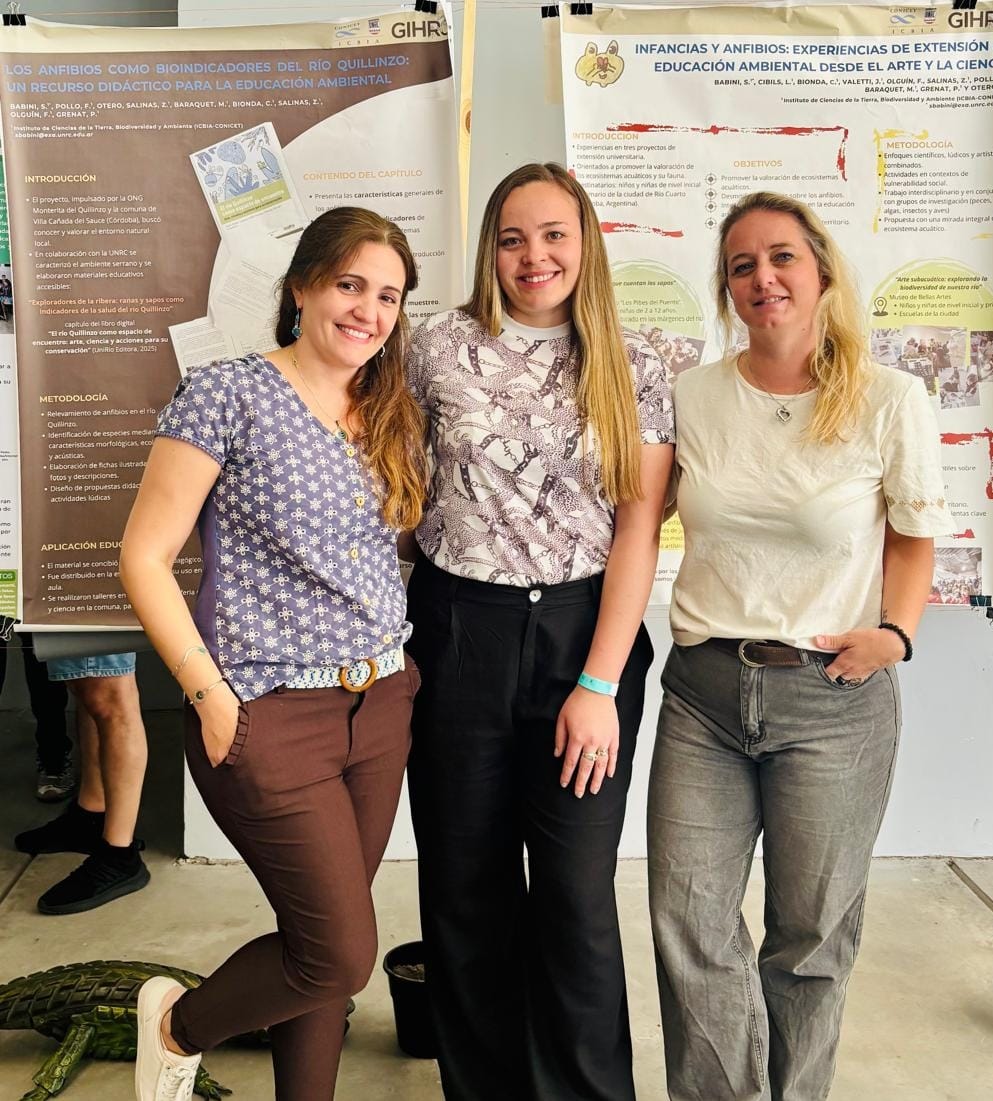El Grupo de Investigación en Herpetología de Río Cuarto (GIHRC), que forma parte del Departamento de Ciencias Naturales y del Instituto de Ciencias Biológicas y Ambientales (ICBIA-CONICET), presentó un total de ocho trabajos de investigación, educación y extensión. Además, participó en un simposio sobre ecología urbana, aportando resultados y reflexiones surgidos de distintos proyectos en desarrollo.