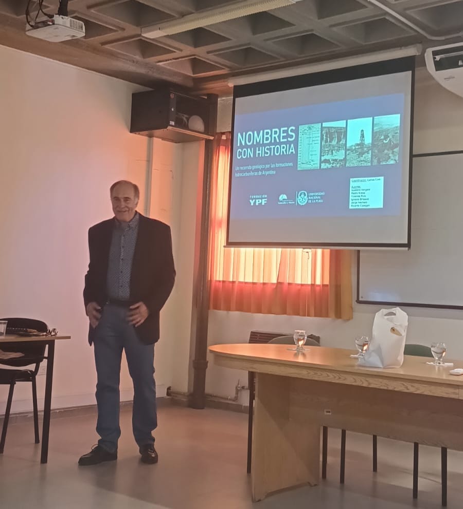 El geólogo Ricardo Calegari, egresado de la primera promoción de Geología de la Facultad de Ciencias Exactas, Físico-Químicas y Naturales de la UNRC, presentó en su casa de estudios el libro “Nombres con Historia: un recorrido geológico por las formaciones hidrocarburíferas de Argentina”.