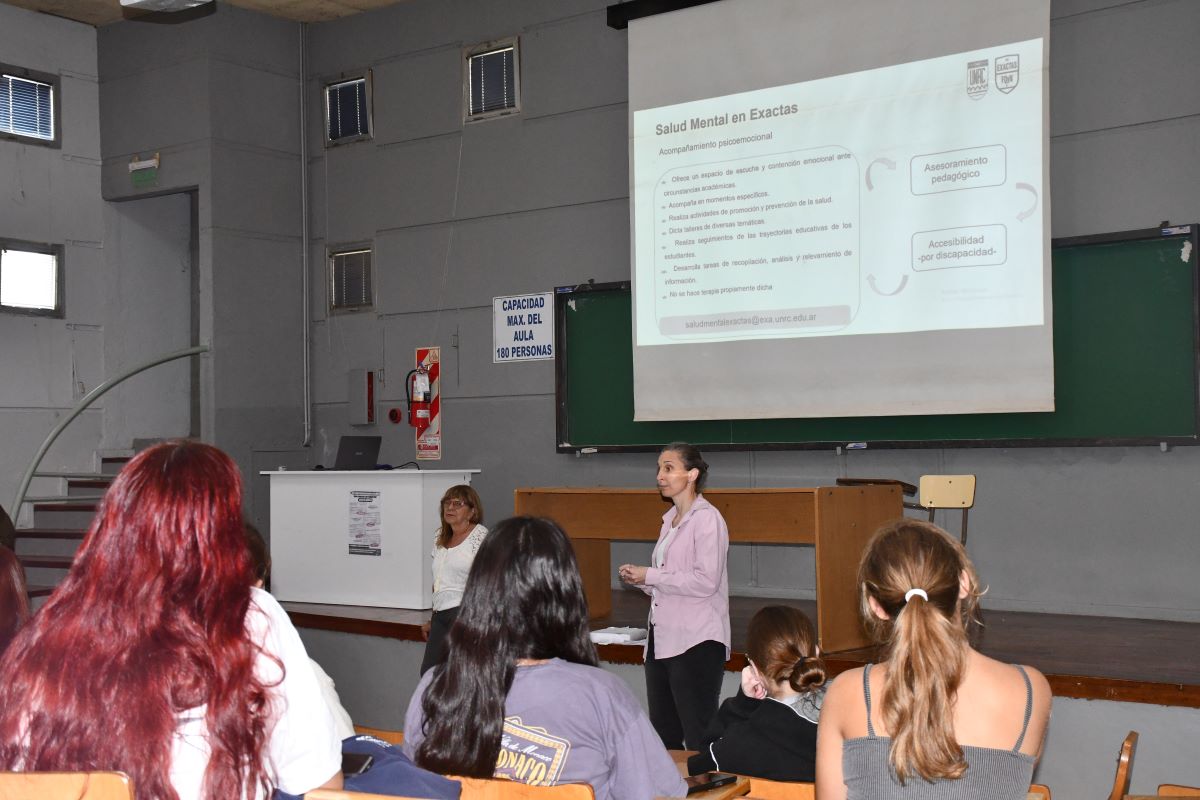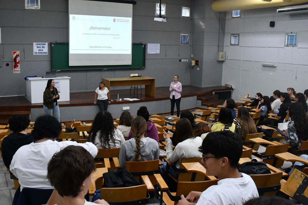 En el marco del Ingreso 2026, estudiantes que iniciaron sus estudios en distintas carreras de la Facultad de Ciencias Exactas, Físico-Químicas y Naturales participaron de dos talleres destinados a favorecer su integración a la vida universitaria y brindar herramientas académicas e institucionales fundamentales para el comienzo de su trayectoria formativa.