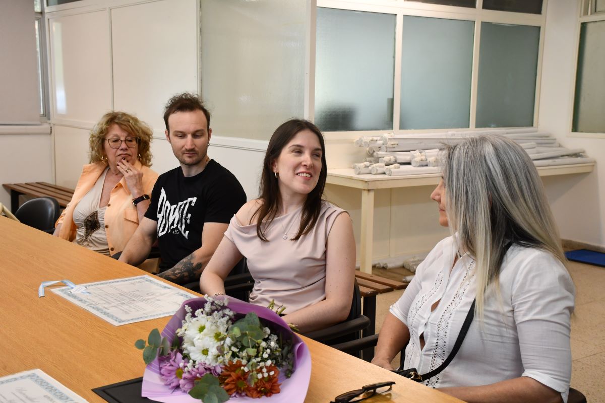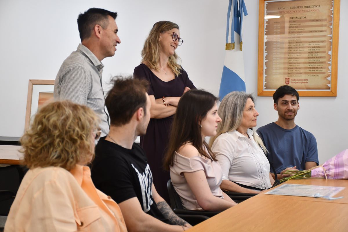 Tras la entrega de diplomas, los nuevos graduados de Exactas fueron recibidos en la Sala del Consejo Directivo por el decano Germán Barros y la vicedecana Cintia Paísio. Allí compartieron junto a sus familias un espacio de encuentro y diálogo sobre la vida universitaria, el valor del título alcanzado y los desafíos que se abren en esta nueva etapa.