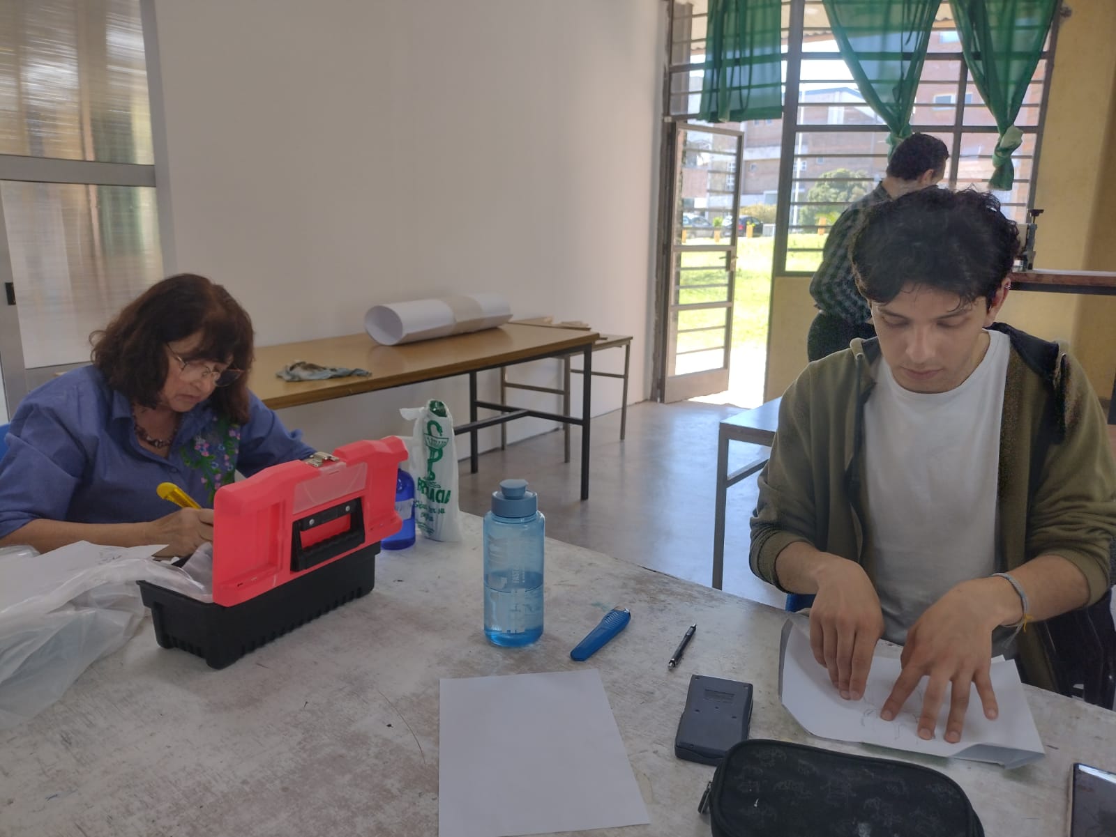 La actividad estuvo coordinada por Fabián Martinetto, docente de talleres de grabado y grabado verde en la UNRC, quien compartió técnicas de producción artística innovadoras y respetuosas con el ambiente. A lo largo del encuentro, los participantes pudieron experimentar un cruce singular entre creatividad estética y reflexión científica, explorando cómo el arte puede convertirse en un lenguaje poderoso para sensibilizar sobre problemáticas ambientales y sociales.